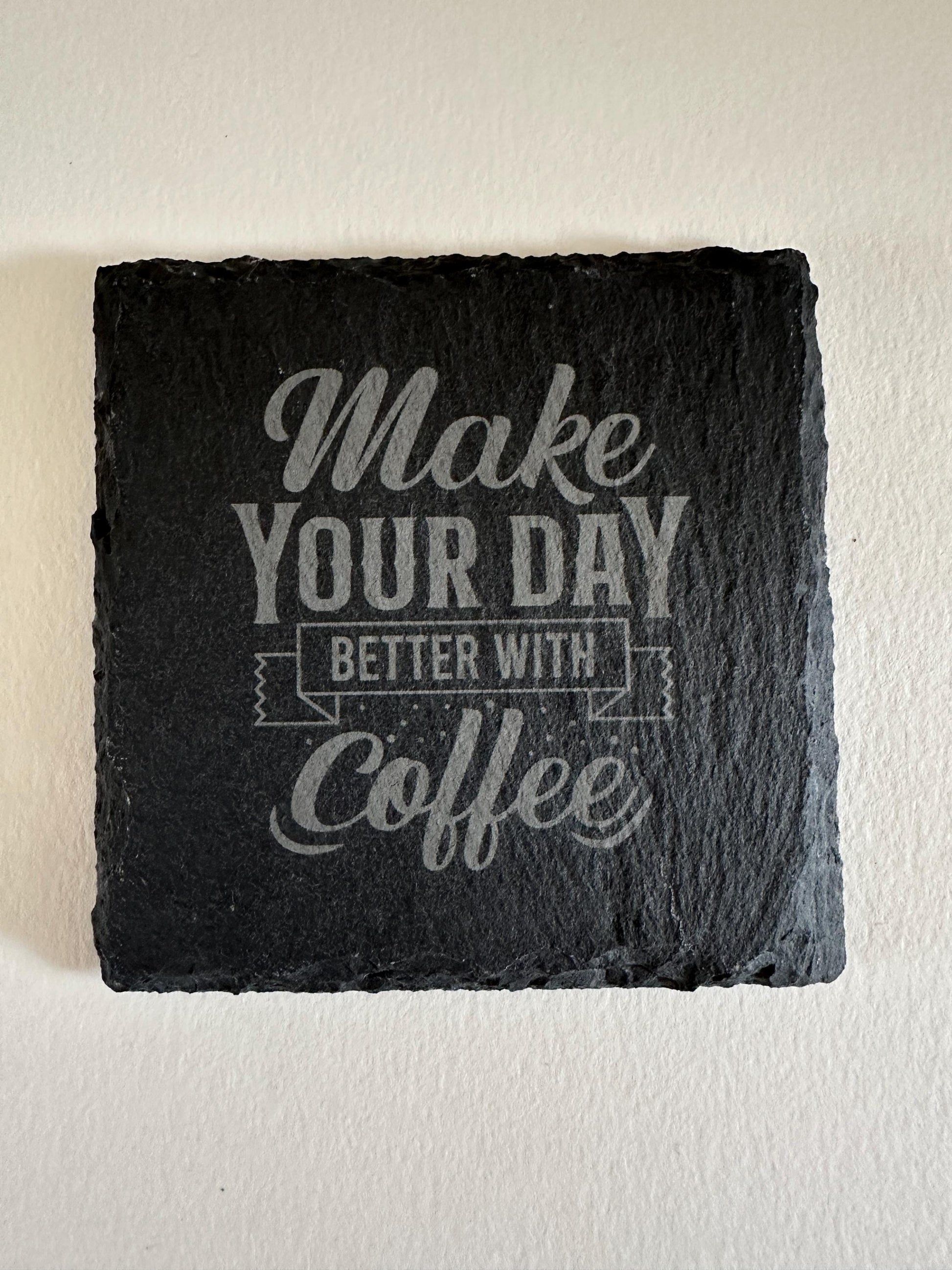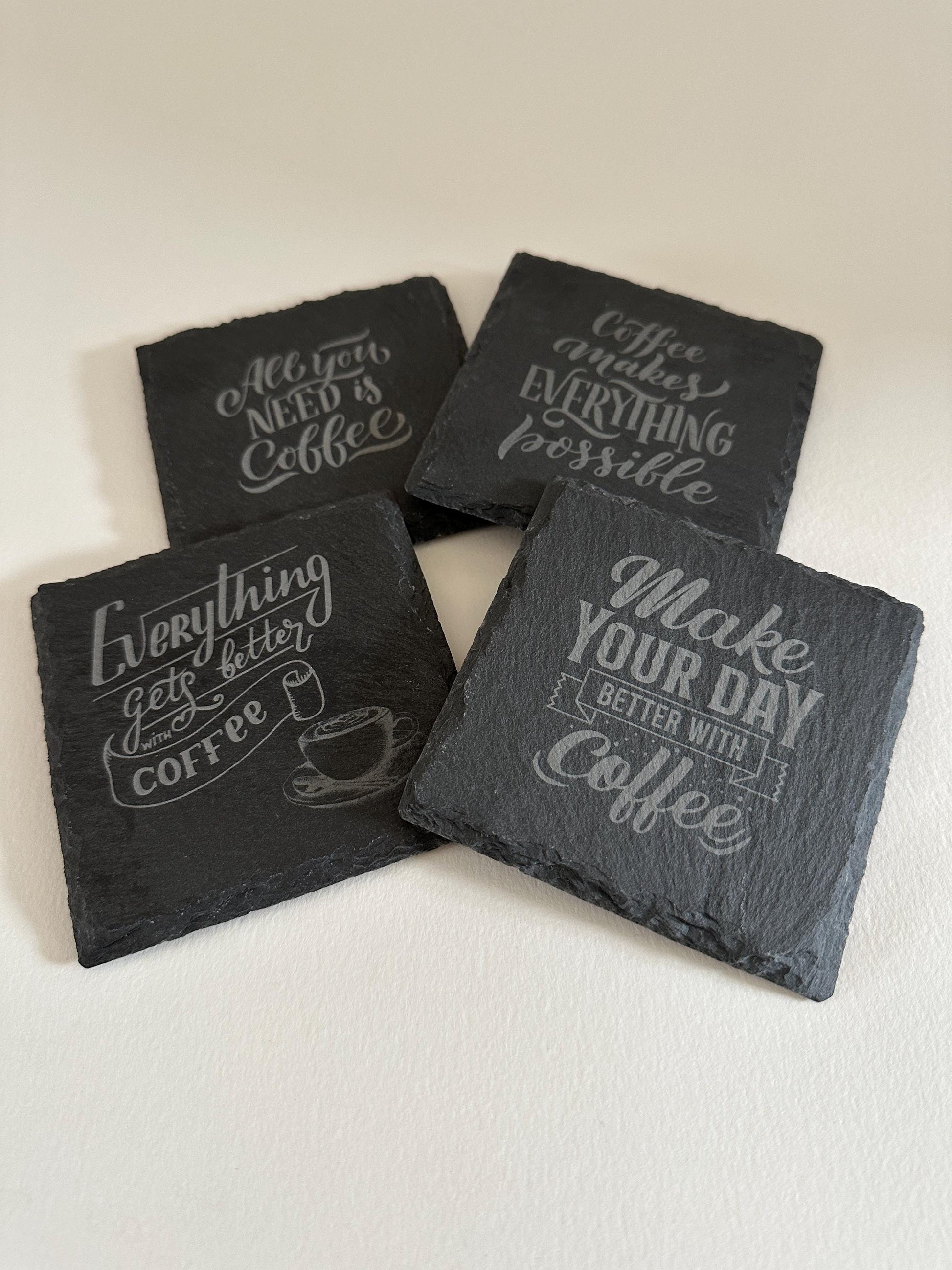 Add a touch of rustic charm to your coffee moments with these beautifully laser-engraved slate coasters, featuring a stylish, coffee-themed design! Whether it’s for your morning espresso or that late-night latte, these coasters will keep your surfaces safe in style. There are four different designs to choose from, only £3.95 each.