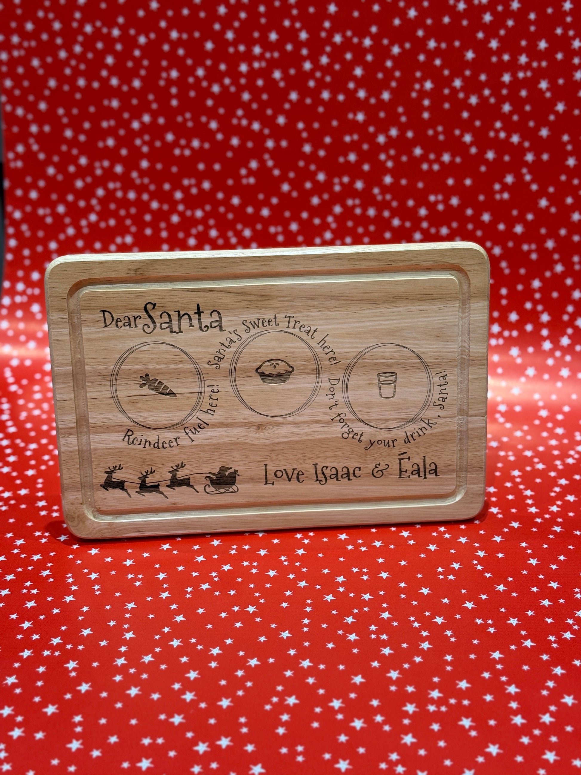 Create a magical Christmas Eve tradition with this beautifully laser-engraved wooden Santa Treat Board, personalised with your children’s names. Perfect for leaving out Santa’s drink, sweet treat, and reindeer food on Christmas Eve!