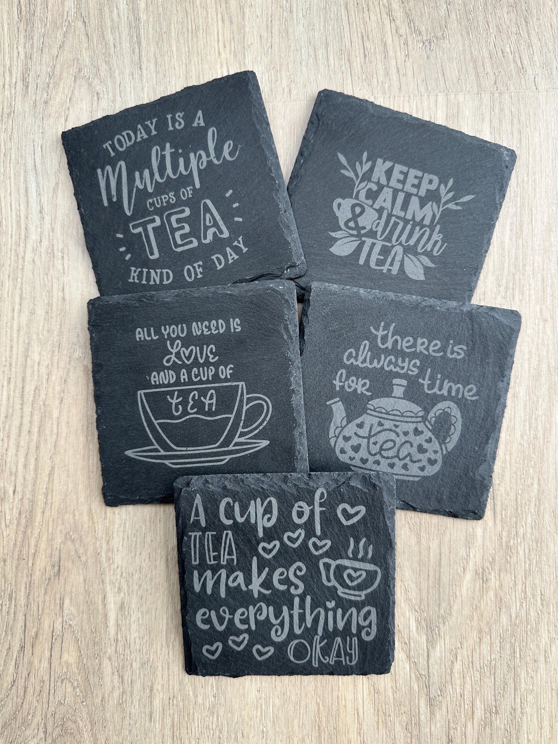 Add a touch of rustic charm to your tea breaks with these beautifully laser-engraved slate coasters, featuring a stylish, tea-themed design! Whether it’s for your morning tea break or afternoon tea, these coasters will keeps your surfaces safe in style. There are five different designs to choose from, only £3.95 each.